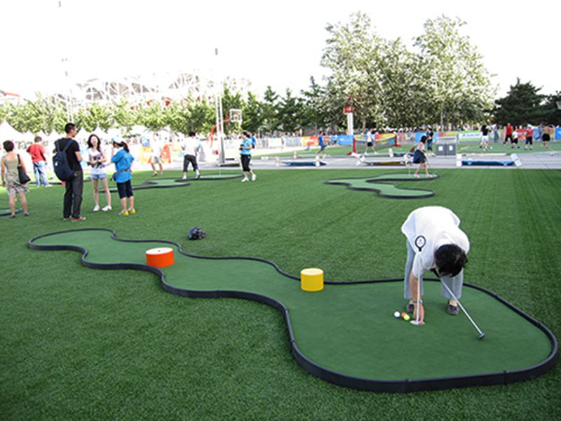 人工芝パークゴルフ場にもTaishanの人工芝が使用されています。敷設の契機としてメンテナンスコストの大幅な削減は第一条件です。芝の透水性の良さからゴルフ愛好者は天候の心配をすることなくゴルフを楽しむことができます。ティー ボックス、パッティンググリーン、ドライビングレンジに敷設される人工芝は場所ごとに色、形状、芝高を変えることで本格的なゴルフ場を表現します。