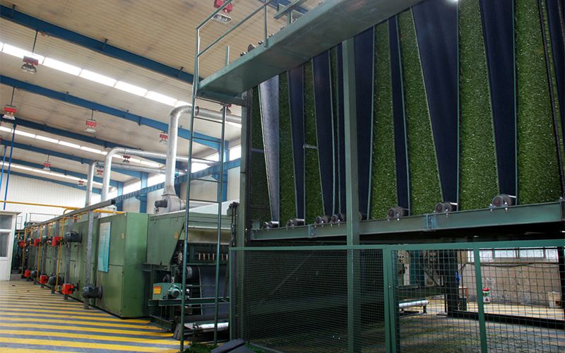 Taishanは先進の製造設備を導入し、めざましい技術向上と生産効率を最大限に高めることに成功しました。当社は原料から人工芝を生産する専門メーカーです。押出成形機/オーストリア STARLINGER、巻線機/ドイツSAHM、撚糸機/ベルギーGILBOSR、タフティング機/イギリスCOBBLE、自動バッキング塗装装置/オーストラリア CTS、PU自動バッキング塗装装置/アメリカ TRCC、舗装機械/ドイツ SMGを購入し完備しています。